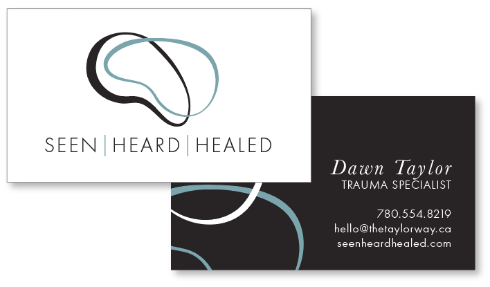 Targeting professionals dealing with trauma, the Seen Heard Healed logo is a mix of professionalism and compassion. The contrast between light and dark gives visual interest. The expanded colour palette allows for flexibility between different audiences to match where they are in their trauma journey.