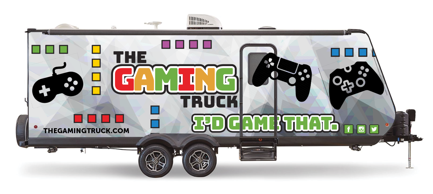 The Gaming Truck brand takes inspiration from retro gaming to resonate with gamers young and old. In our marketing research, we found that the largest group of gamers is actually older Millennials (25 and up). This group grew up playing video games and now has the disposable income to invest in new hardware, software, and downloadable content. Having a video game truck come right to them is an impressive and fun group activity.
